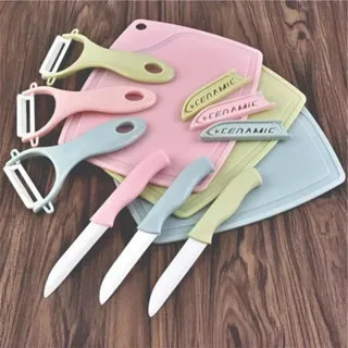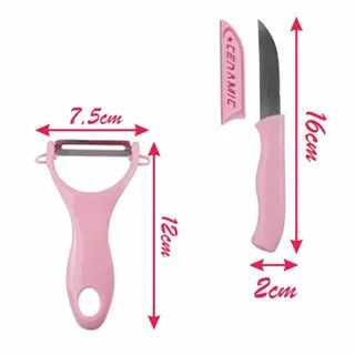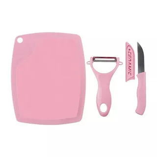 Contém: 3 peças: TABUÁ + FACA E DESCASCADOR EM CERÂMICA